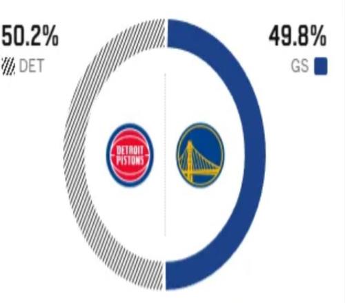 这是两队本赛季的首次交手,在过去的两次交锋中,勇士全部获胜,优势明显。赛前,美媒ESPN对本场比赛进行了胜率预测,勇士队胜率意外高达49.8%,活塞队胜率则仅有50.2% ,算是半斤八两。