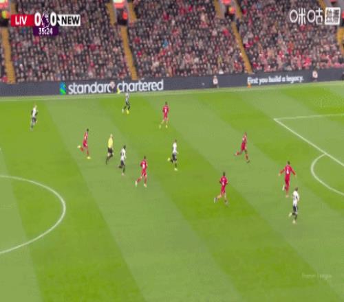 第36分钟,纽卡斯尔反击,左路迅速推进至前场,禁区内巴恩斯接到队友横传,再转身分给右侧的戈登,戈登调整后低射破网,纽卡斯尔1-0利物浦。↓